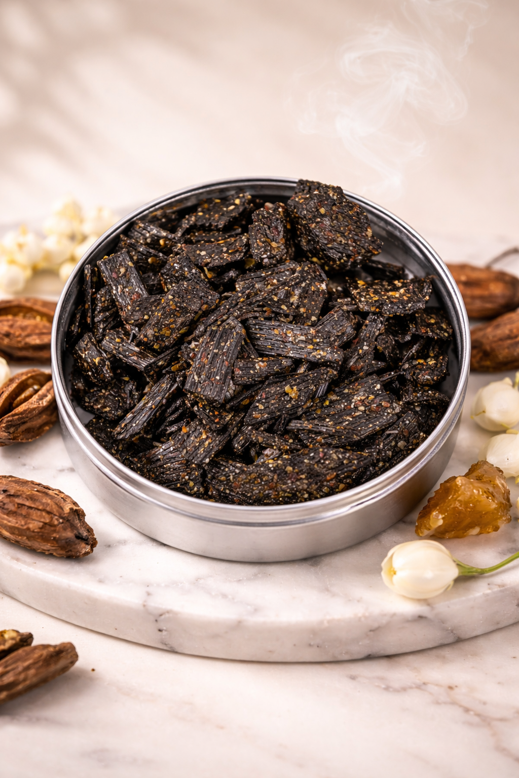 Place a small amount of incense on burning charcoal or an electric incense burner, and let the scent fill the room with a touch of elegance and luxury.