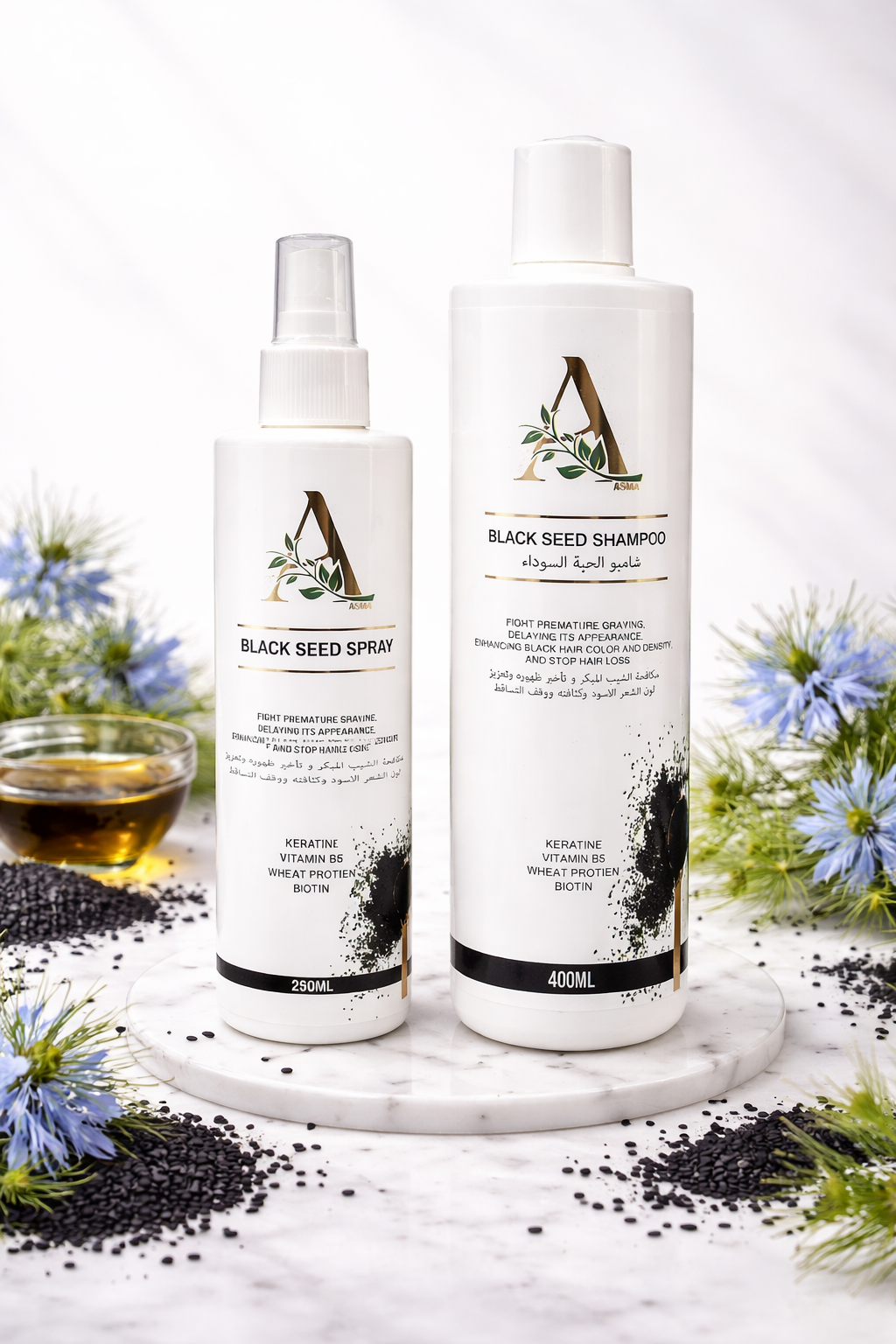 Our Black Seed Spray and Shampoo are infused with the natural goodness of black seed oil to deliver a holistic hair care experience. Known for its nourishing and strengthening properties, black seed helps to repair damaged hair, reduce hair fall, and promote healthy growth. This powerful duo works to deeply hydrate and revitalize your strands, leaving them soft, shiny, and full of life. With regular use, it also supports a balanced scalp, ensuring long-lasting hair health and a refreshed, rejuvenated feel.